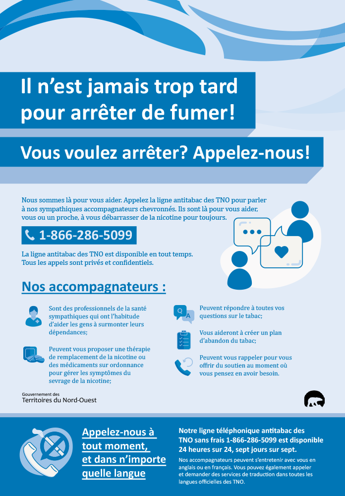 Want to quit smoking? Looking to talk to someone about a friend’s tobacco use? Give the NWT Quitline a call! (North Slavey) (pdf/158.55 Ko)